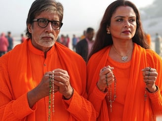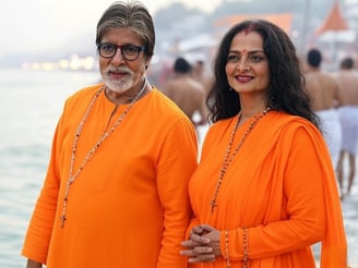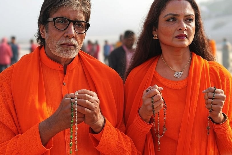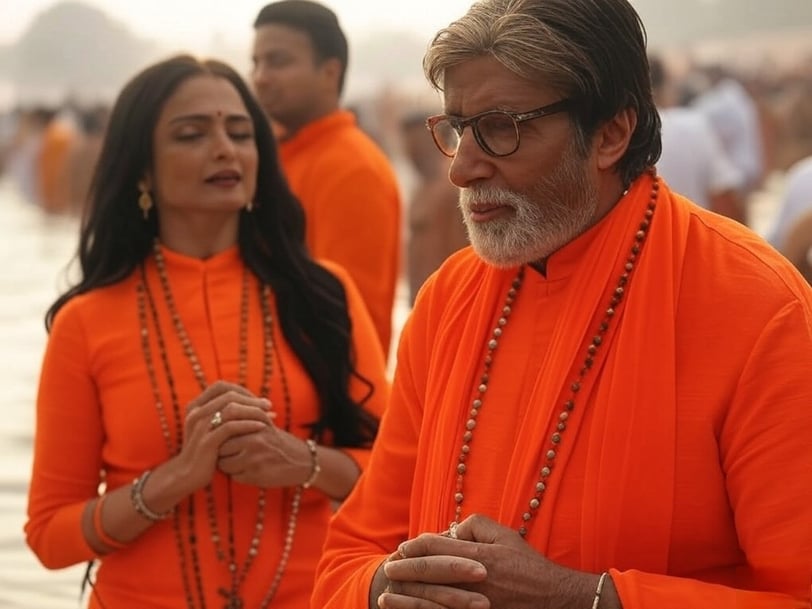 महाकुंभ मेले में अमिताभ बच्चन और रेखा भगवा वस्त्रों में? वायरल वीडियो की सच्चाई